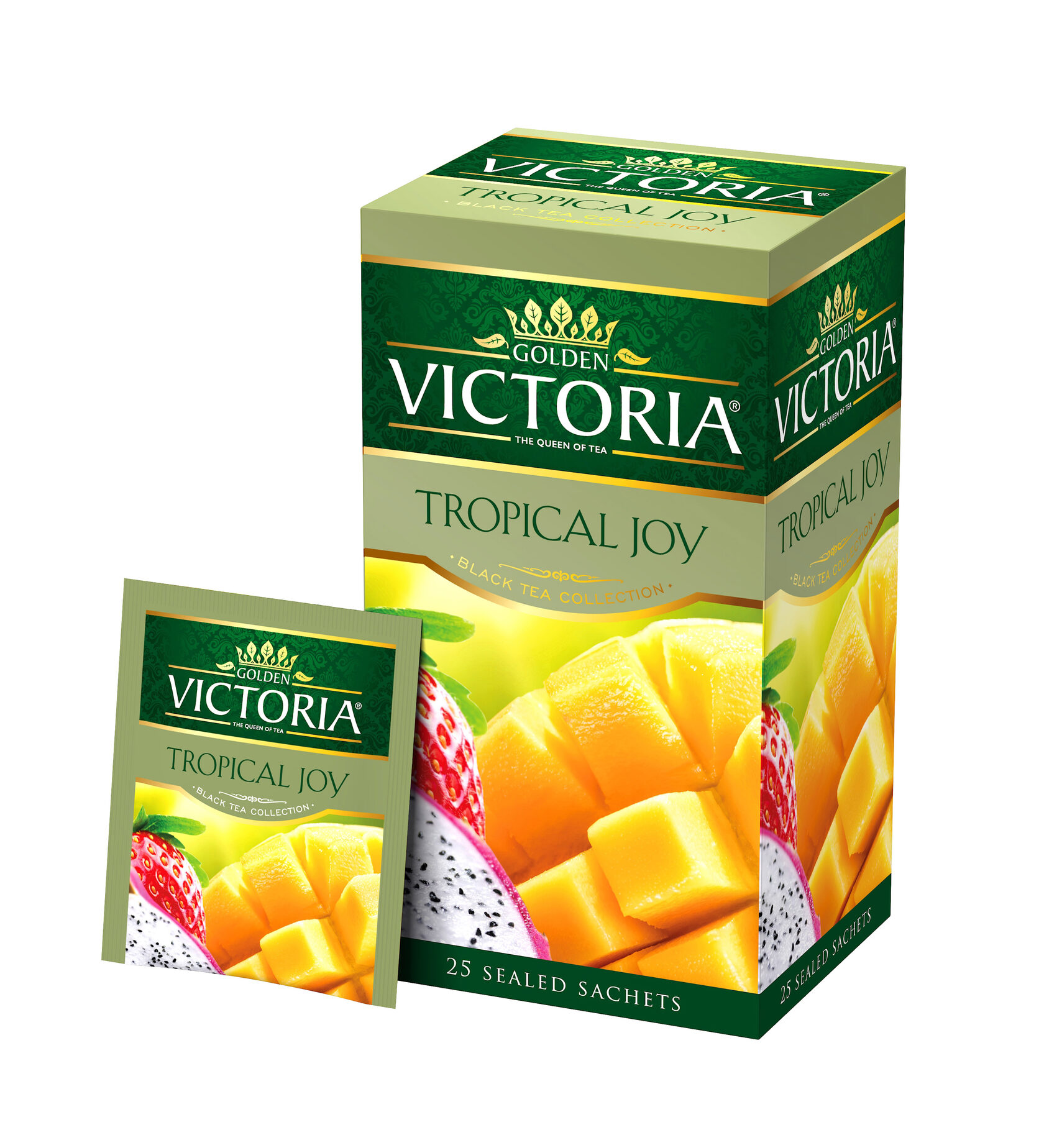 Баланс терпкости черного чая, экзотических ярких нот манго и вкуса спелой клубники будоражат воображение. Чай Golden Victoria Tropical Joy создает свежий, сладкий и пряный аромат, который напоминает теплые тропические ночи и дарит ощущение радости и наполненности жизни.